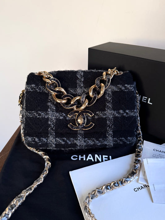 Pre-owned Chanel 19 Small Black Tweed Flap Bag