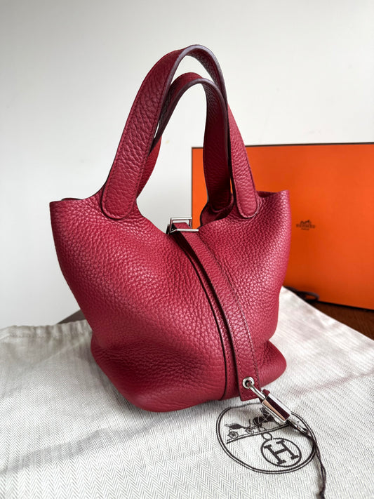 Pre-owned Hermès Picotin 18 Clemence Rouge Grenade Handle Bag