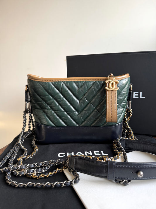 Pre-owned Chanel Gabrielle Small V-stitch Dark Green Leather Hobo Bag Limited Color