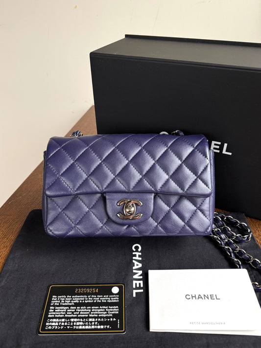 Pre-owned Chanel Timeless Mini Rectangle Purple Leather Bag