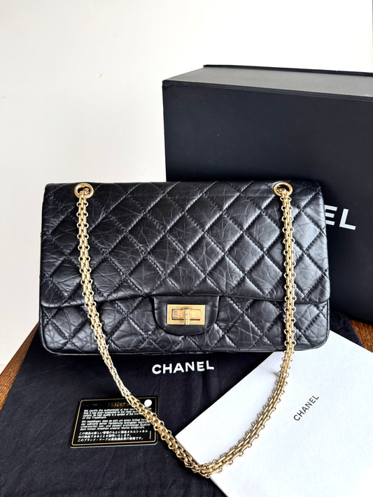 Pre-owned Chanel 2.55 Reissue Maxi 227 Black Calfskin Flap Bag