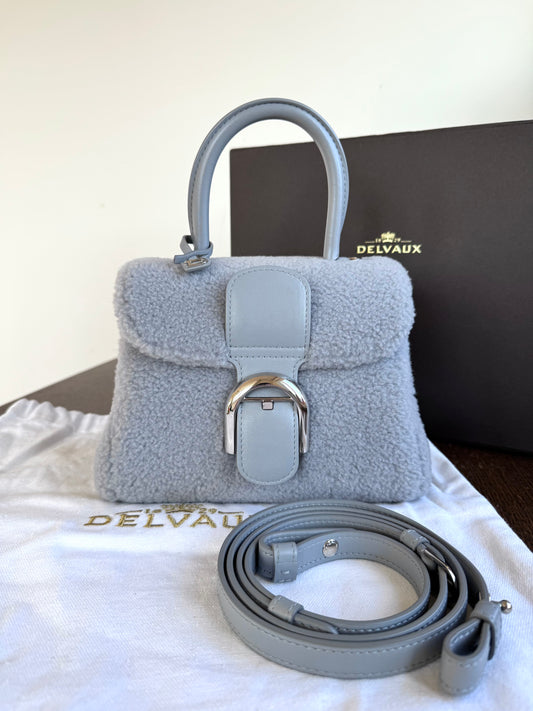 Pre-owned Delvaux Brillant Mini Sweet Cloud Teddy Ice Blue Wool Bag Limited Edition