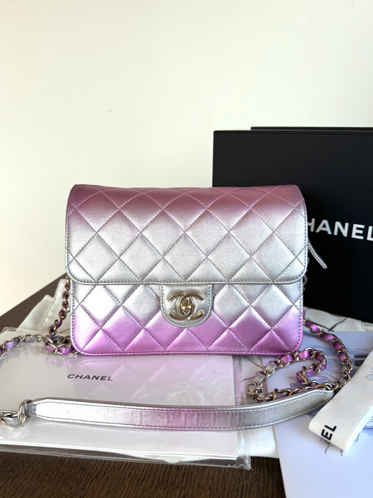 Pre-owned Chanel Like A Wallet Metallic Silver Pink Lambskin Flap Bag