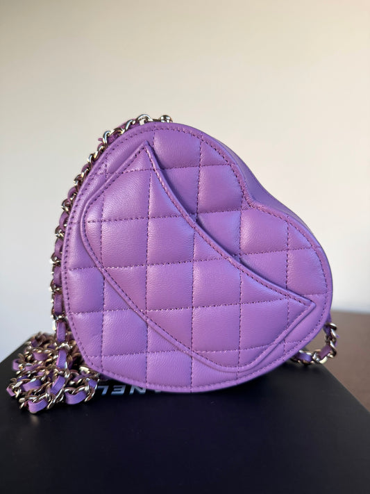 Pre-owned Chanel CC In Love Small Purple Leather Heart Bag
