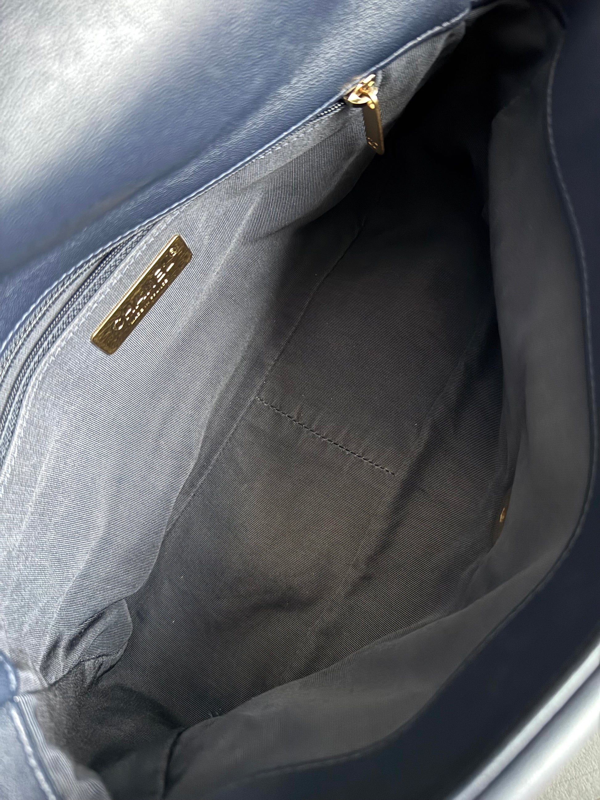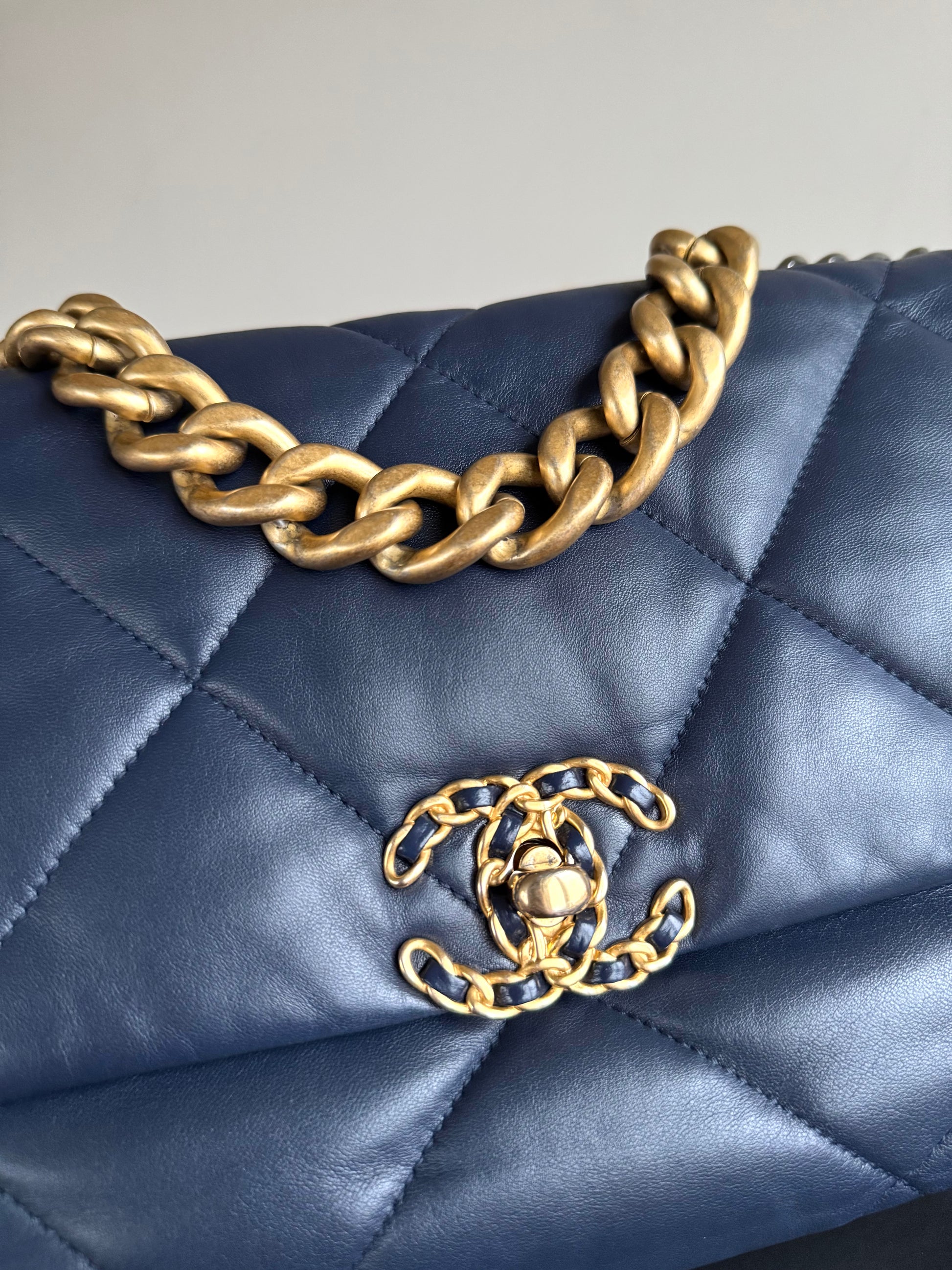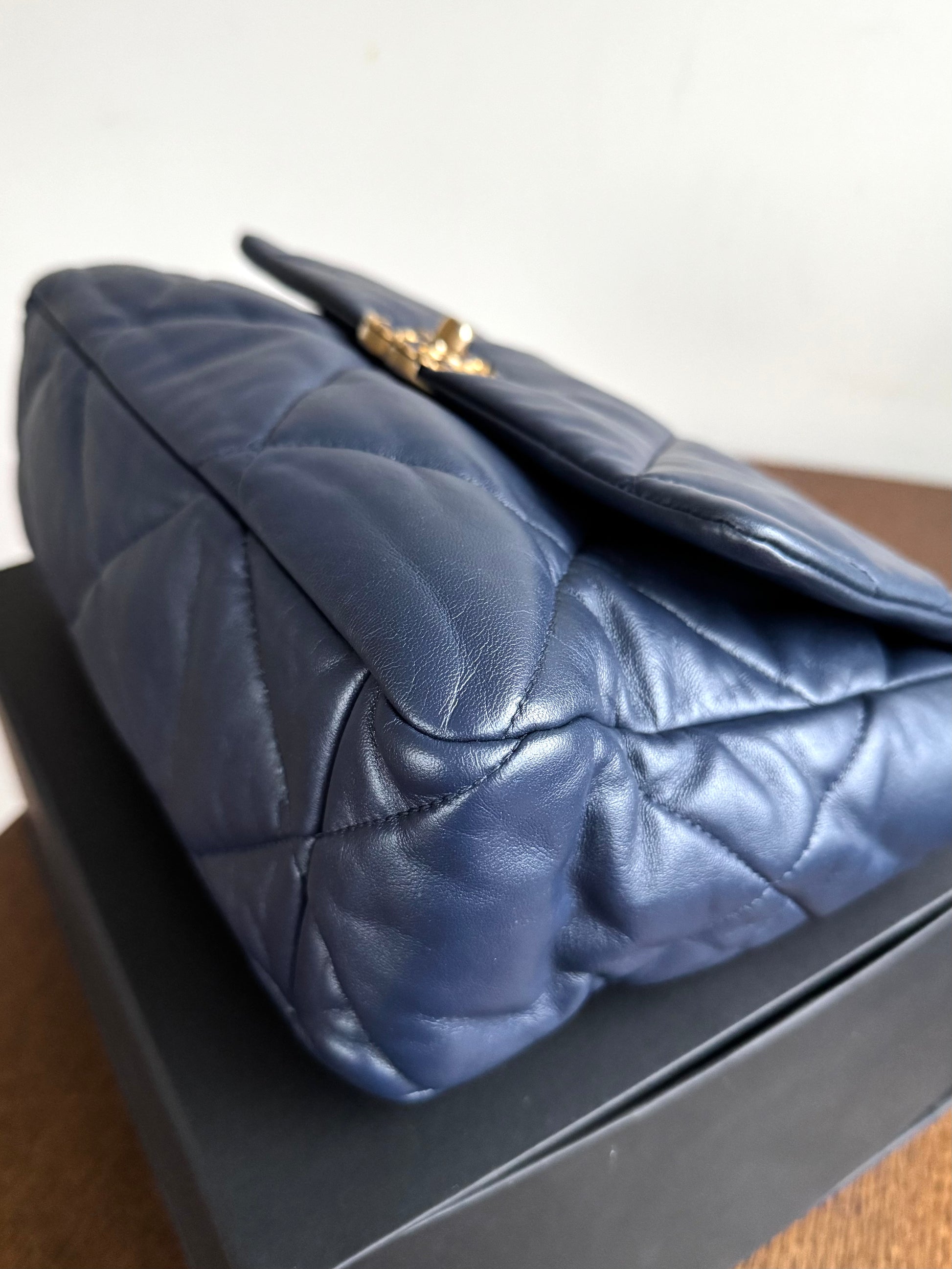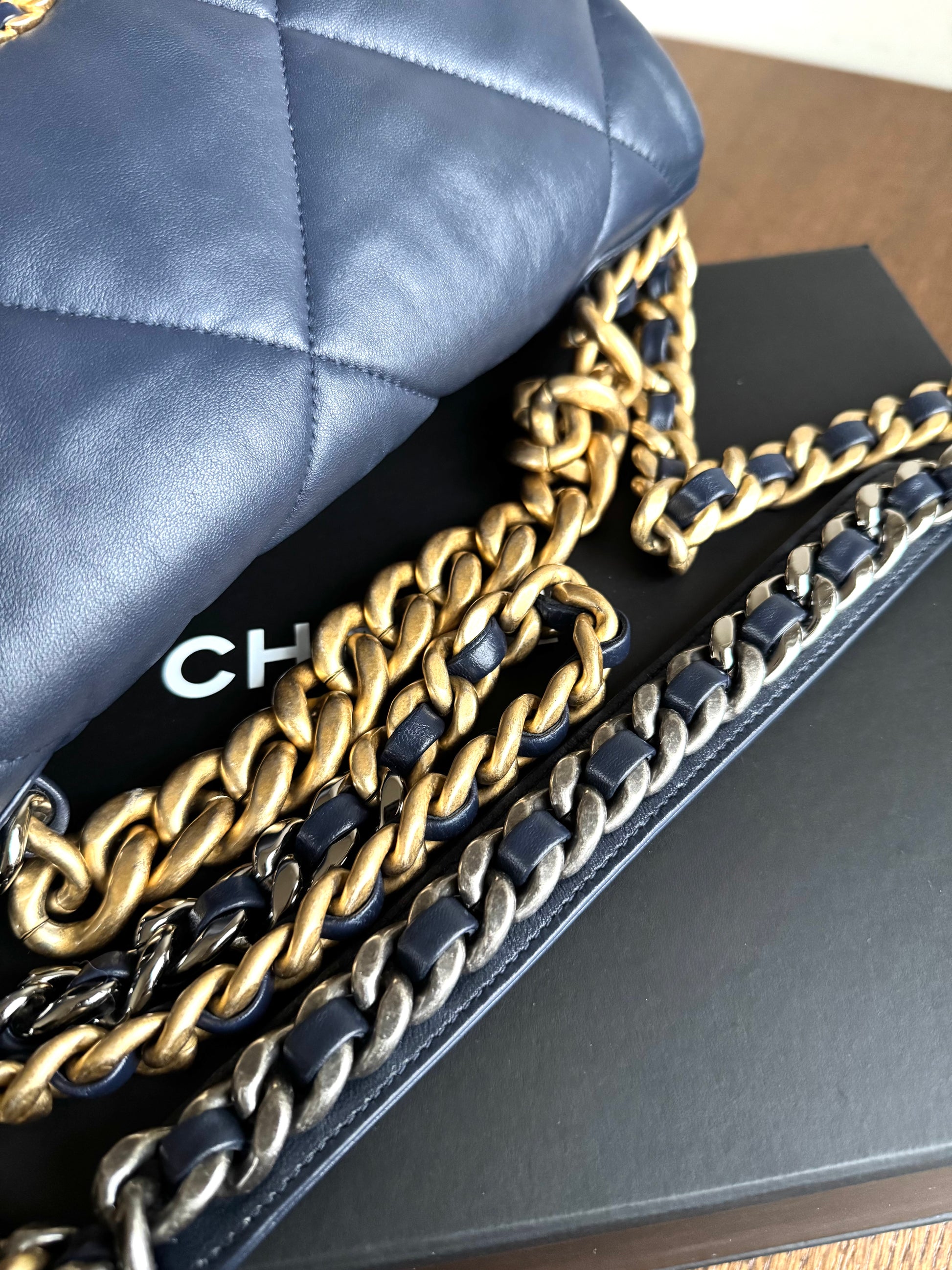Pre-owned Chanel 19 Small Navy Lambskin Flap Bag