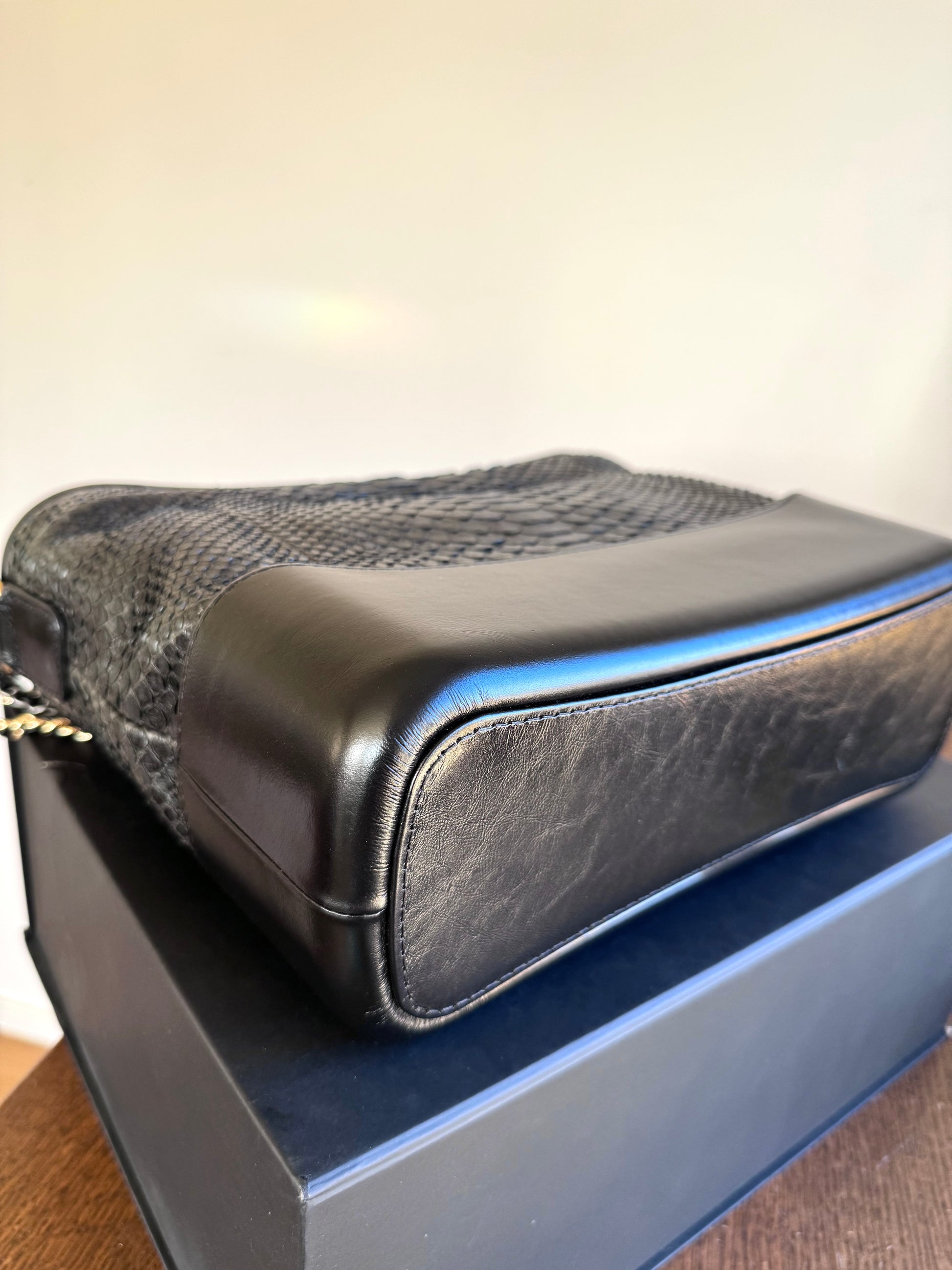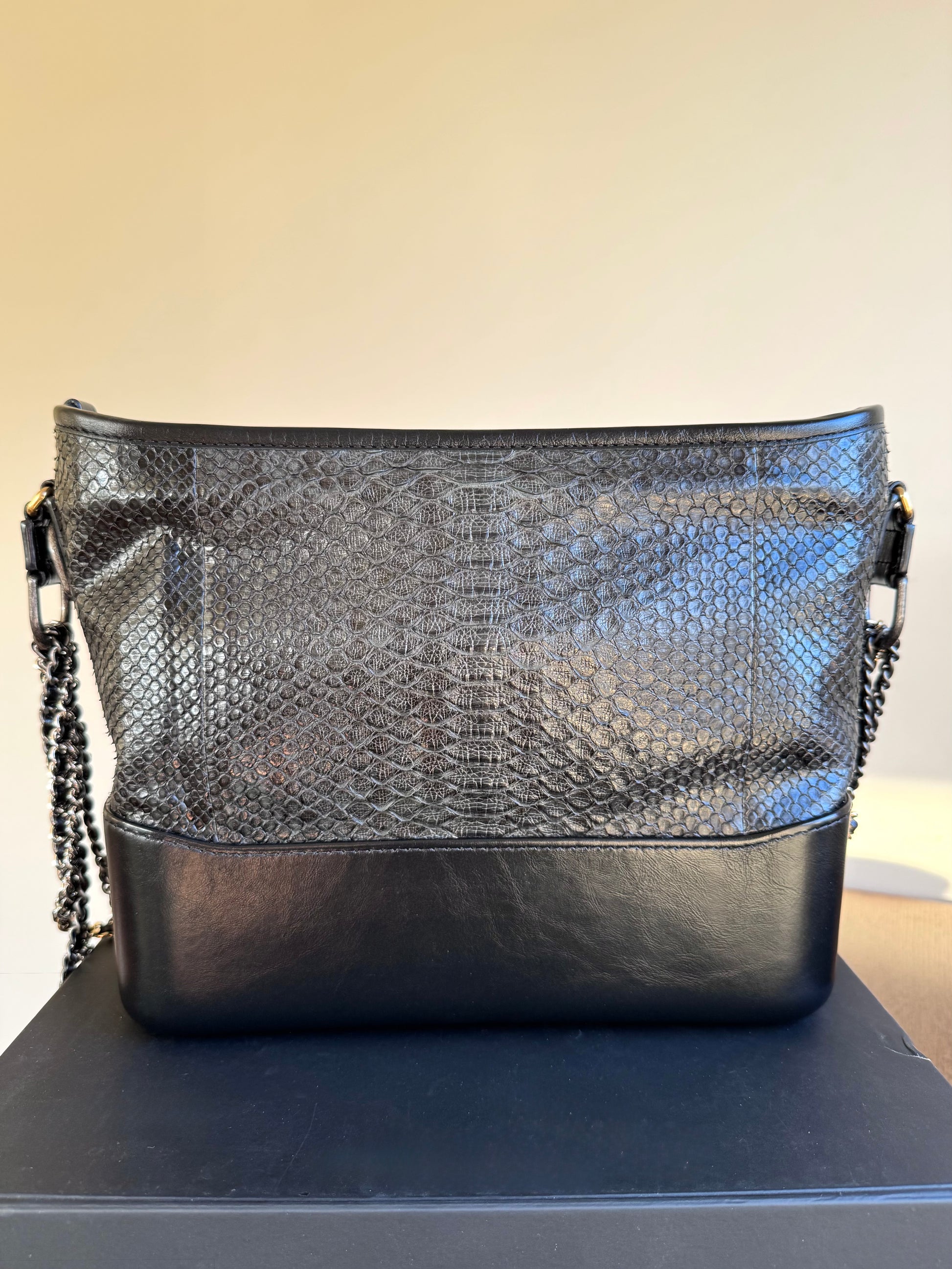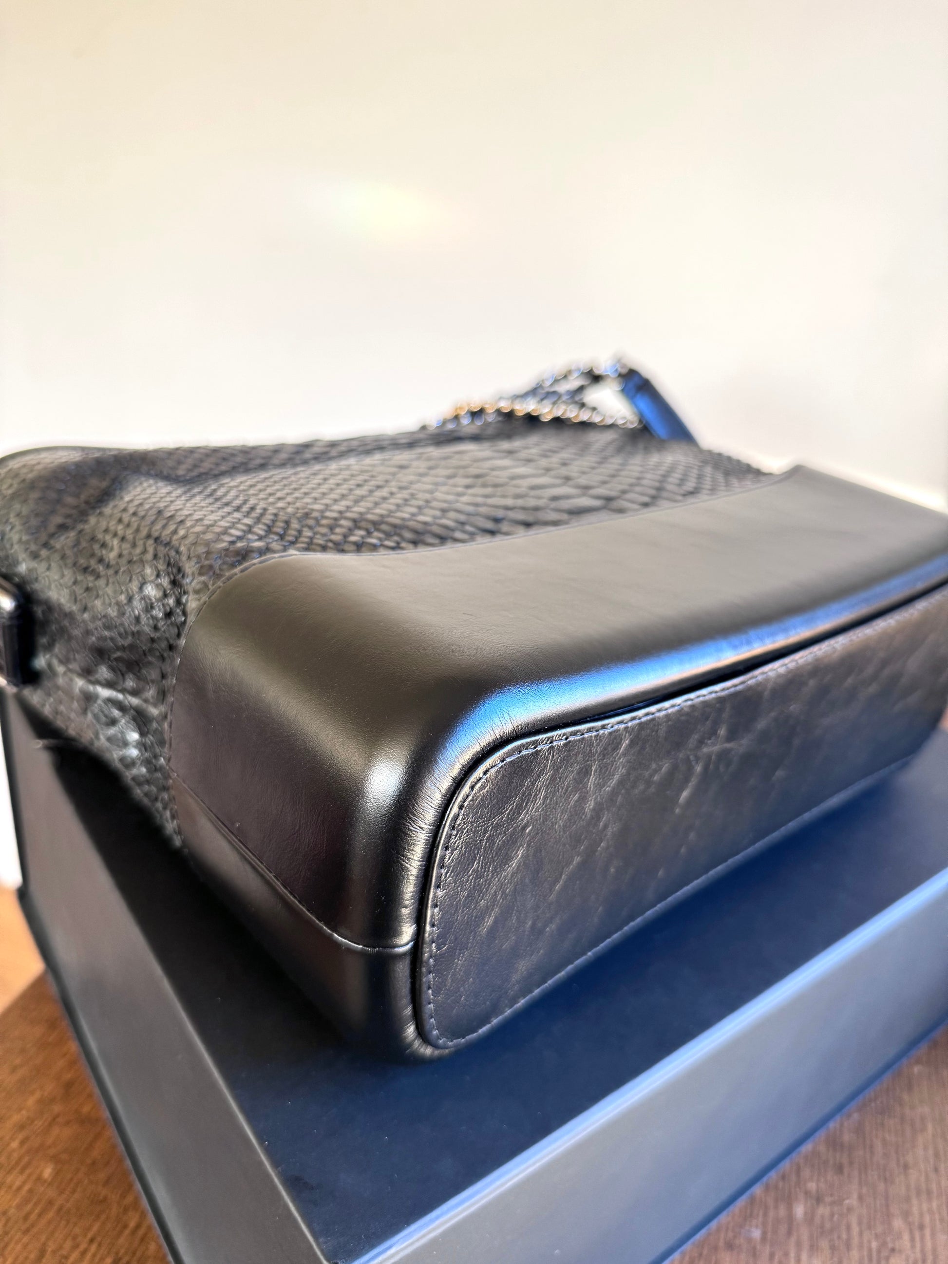 Pre-owned Chanel Gabrielle Medium Black Python Leather Hobo Bag Limited Edition