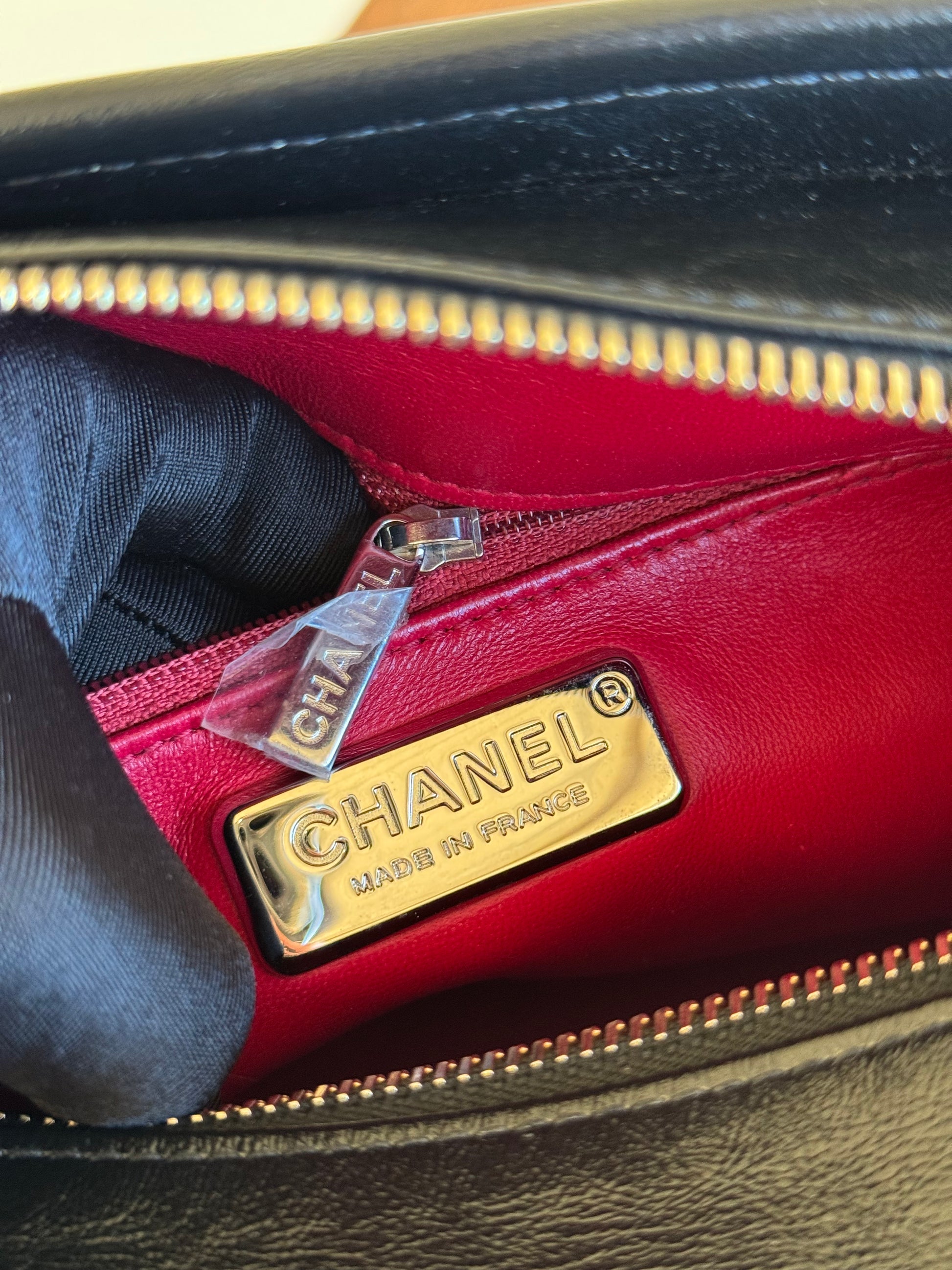 •Red leather lining