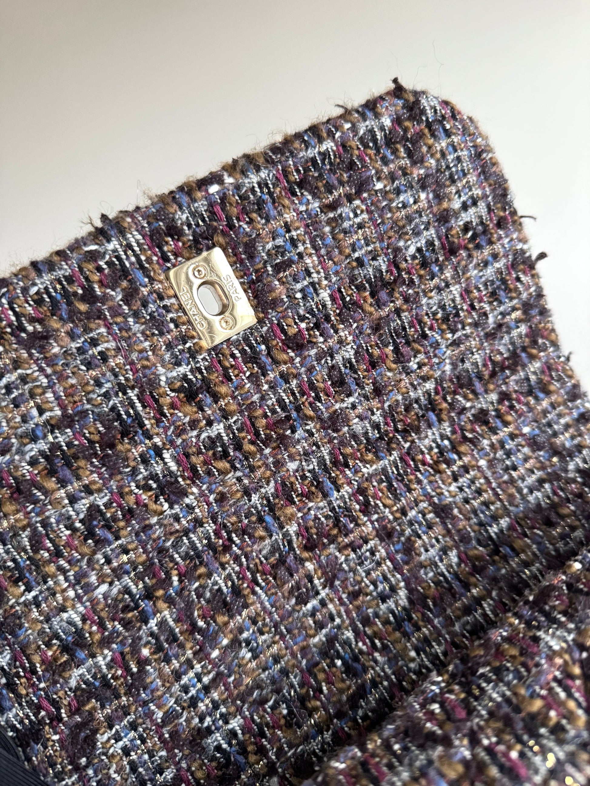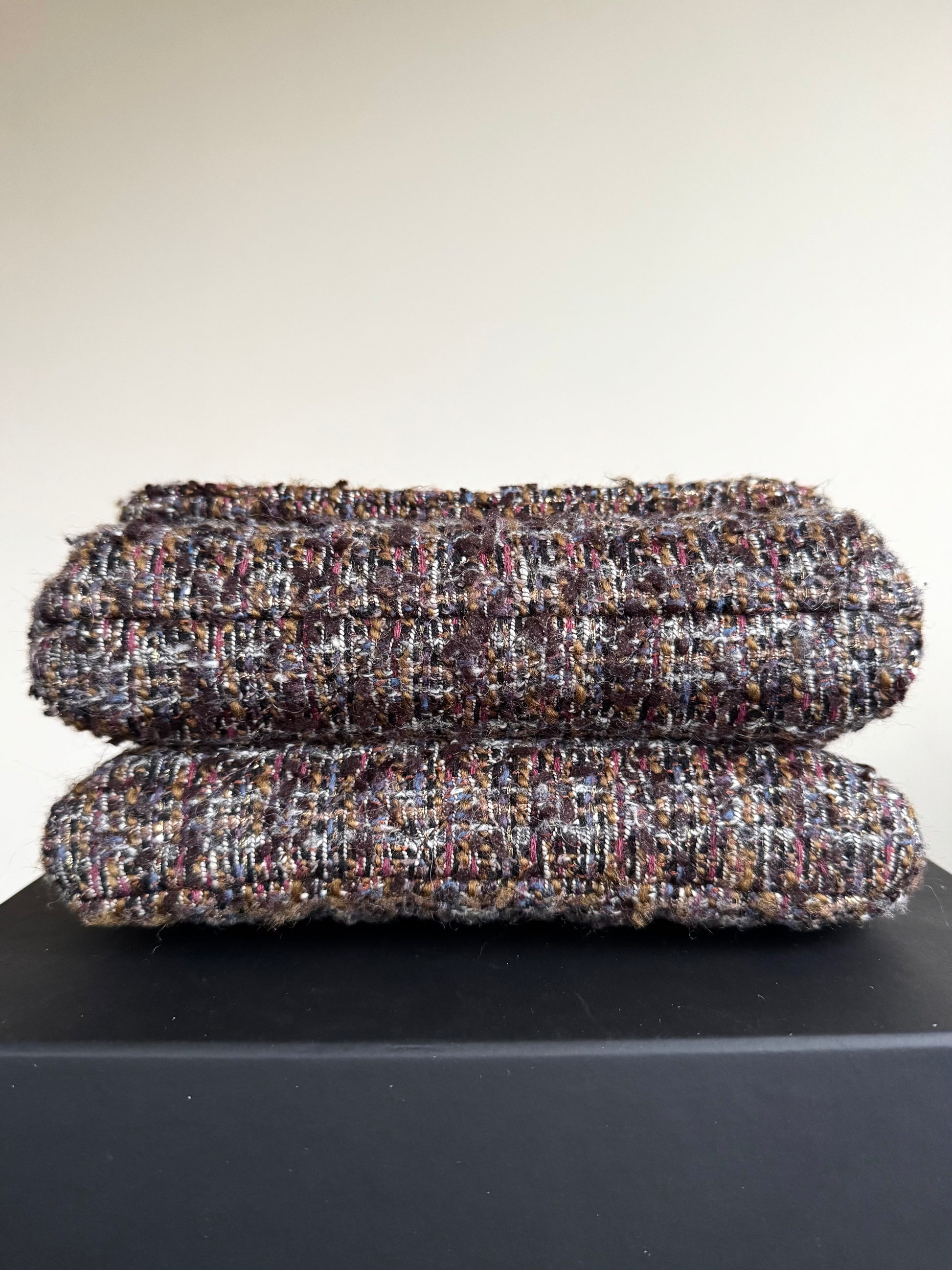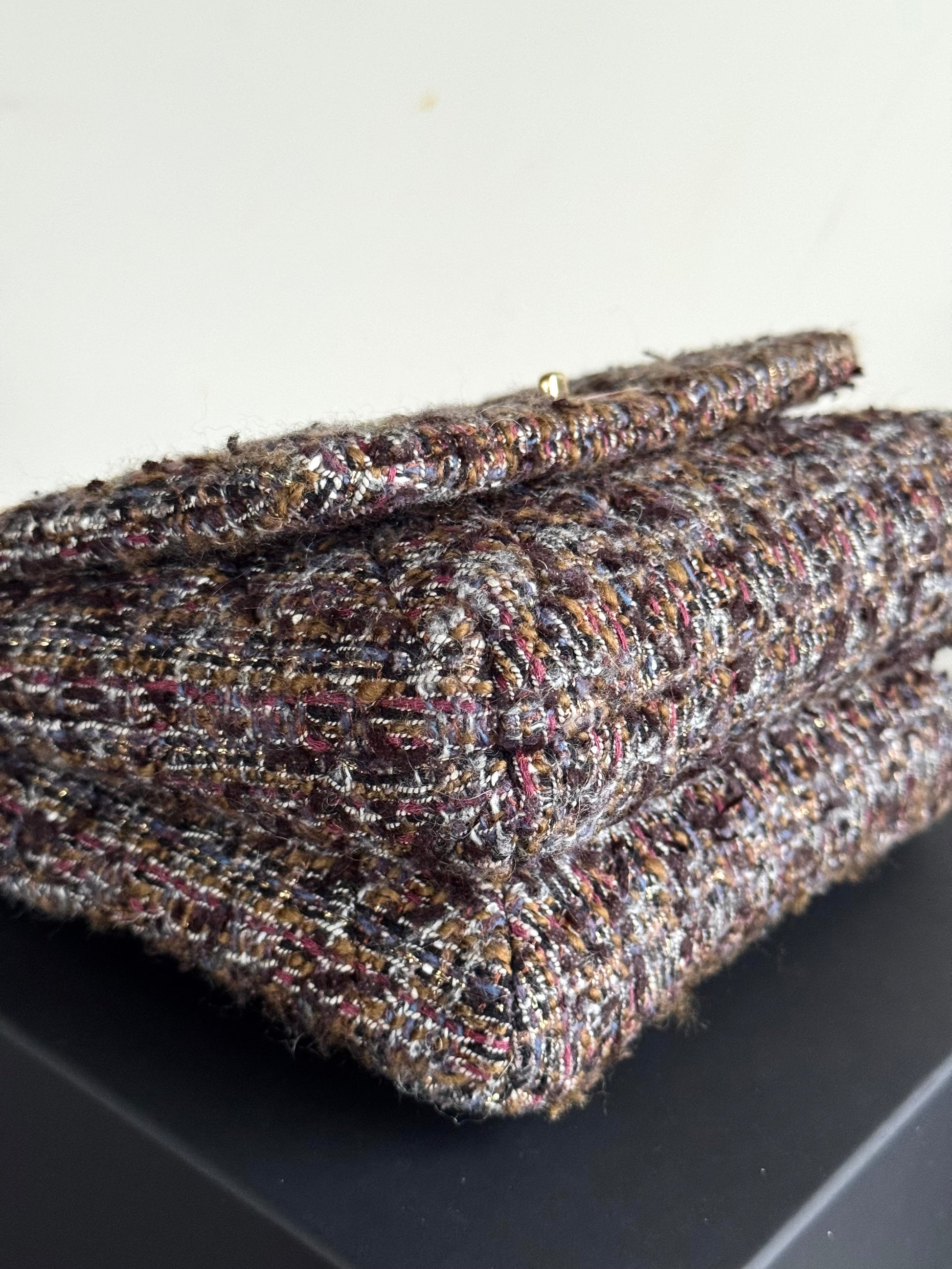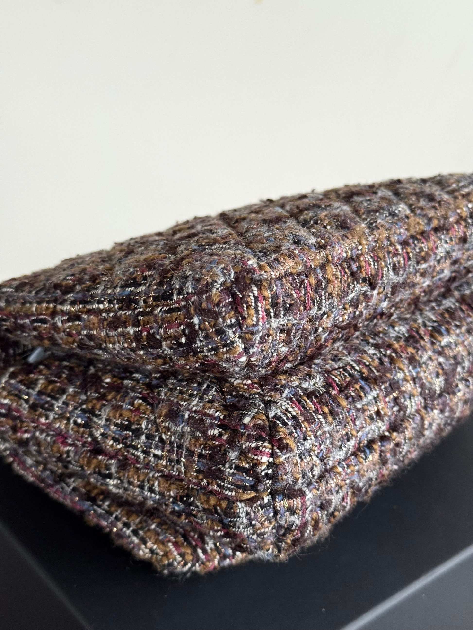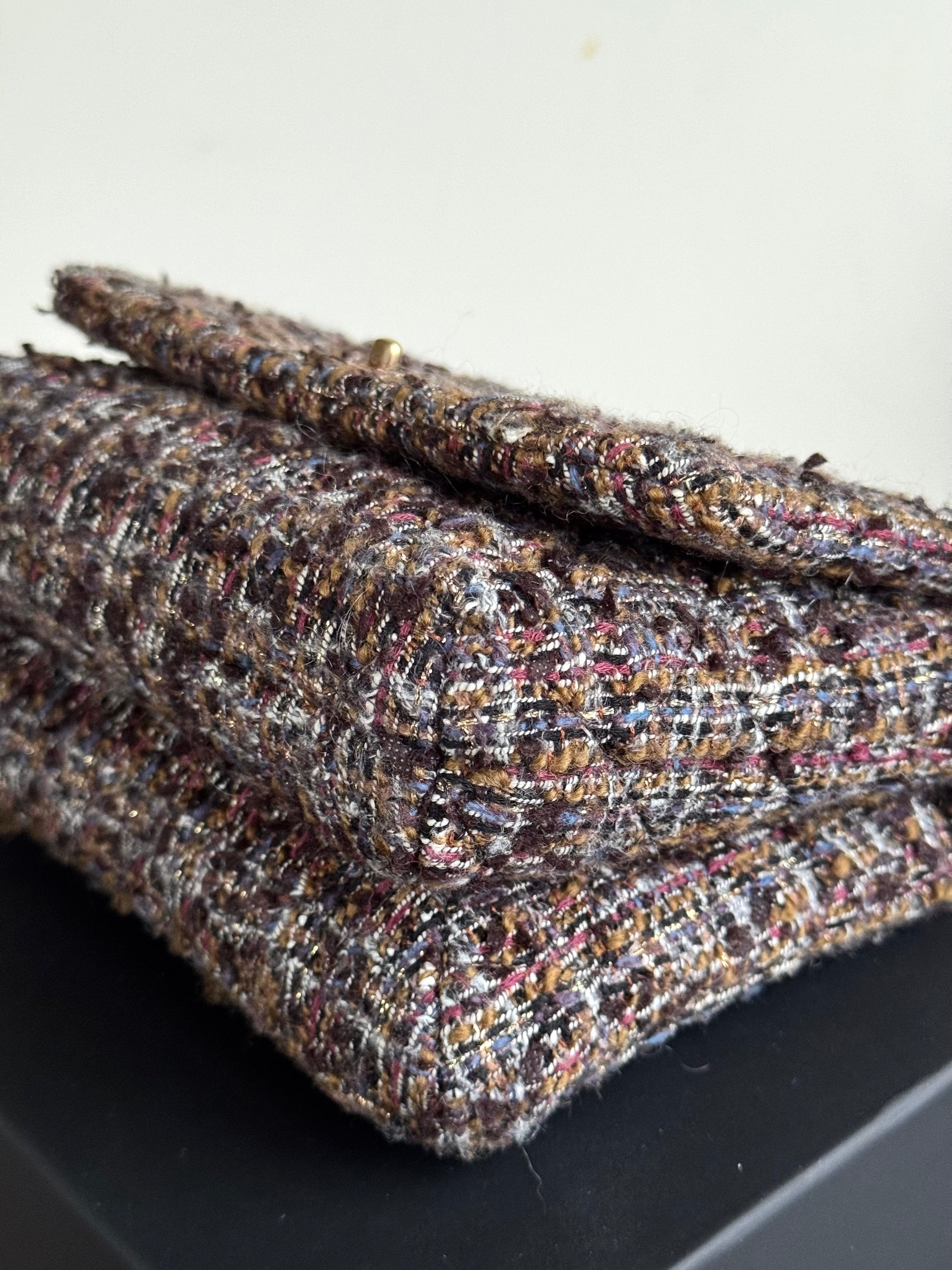 •From the year 2018 (26497925) •Brown tweed with wood handle •Brown fabric lining •Gold hardware •The chain is neither removable nor adjustable •Can be worn crossbody •In excellent condition •No visible defects •Sold with the dust bag, box, care booklet and cleaning glove •Width:22cm Height:16cm Depth:10cm