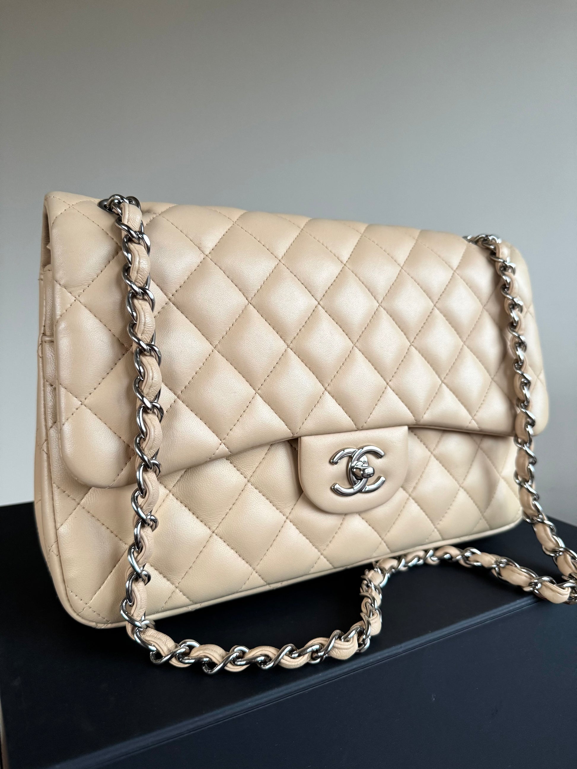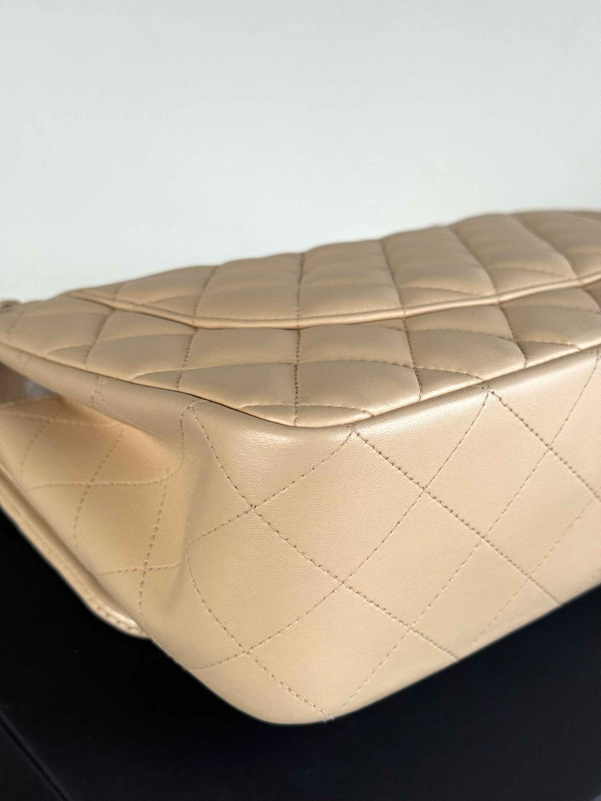 Pre-owned Chanel Timeless Classic Jumbo Beige Lambskin Flap Bag
