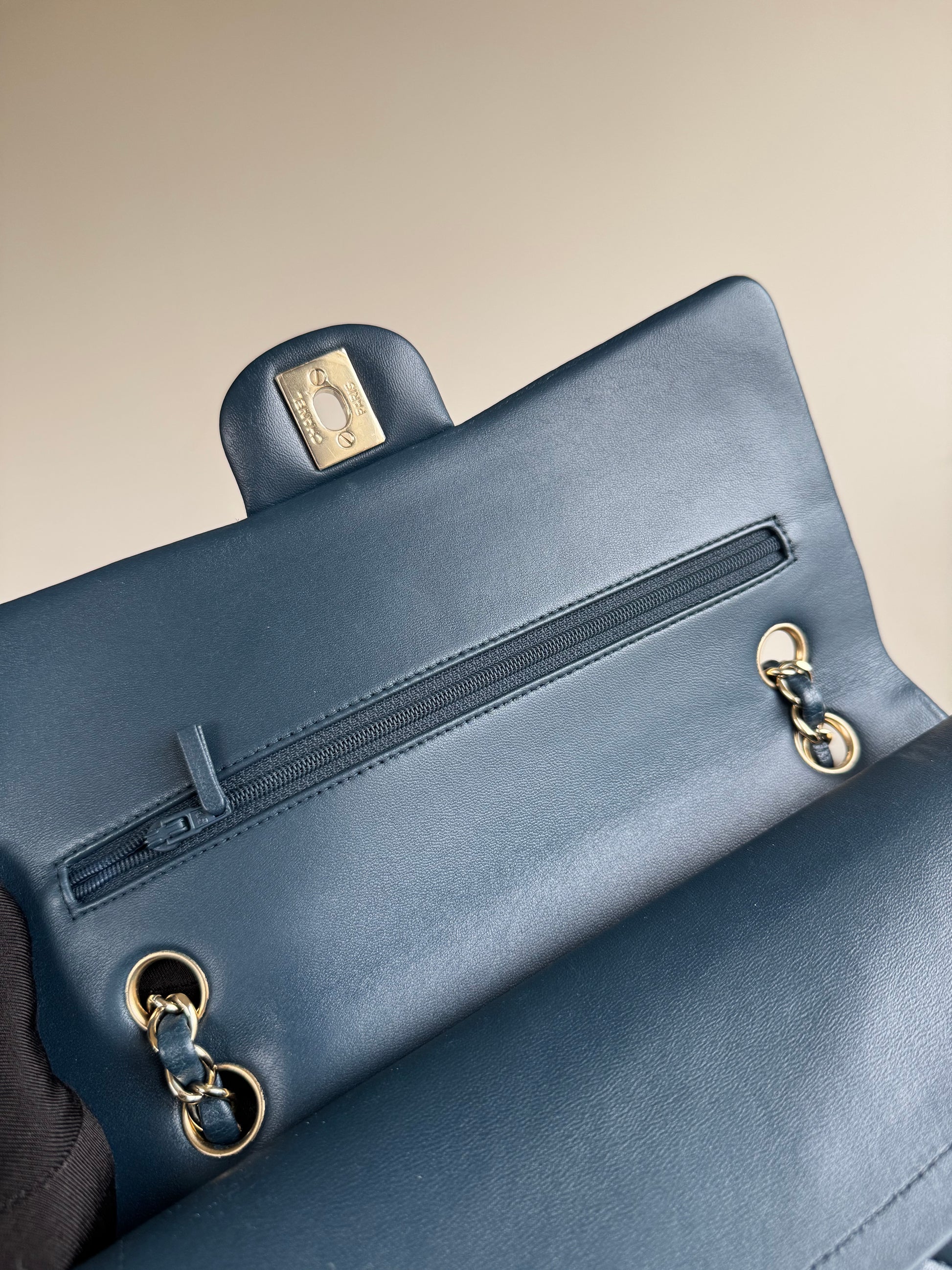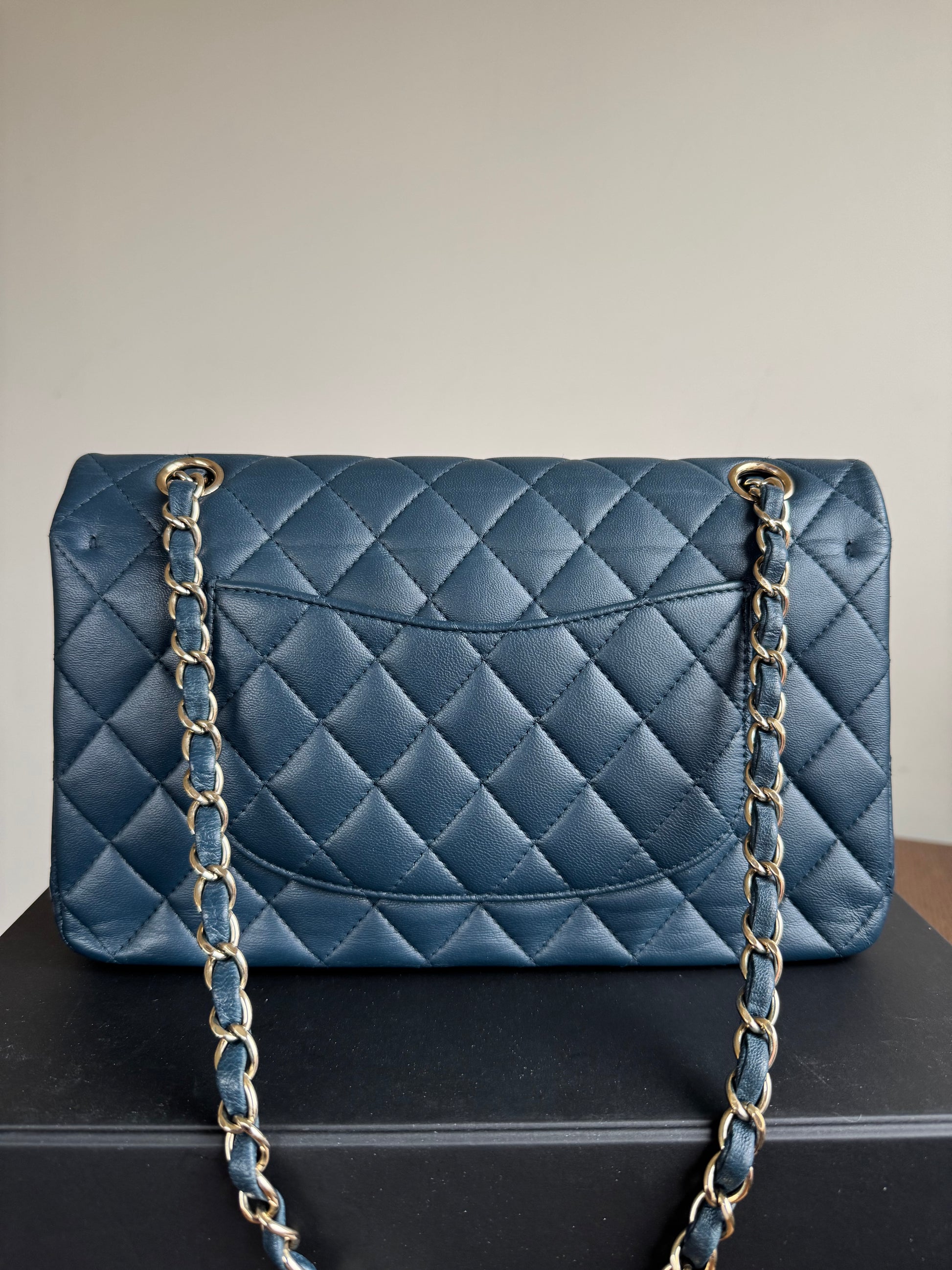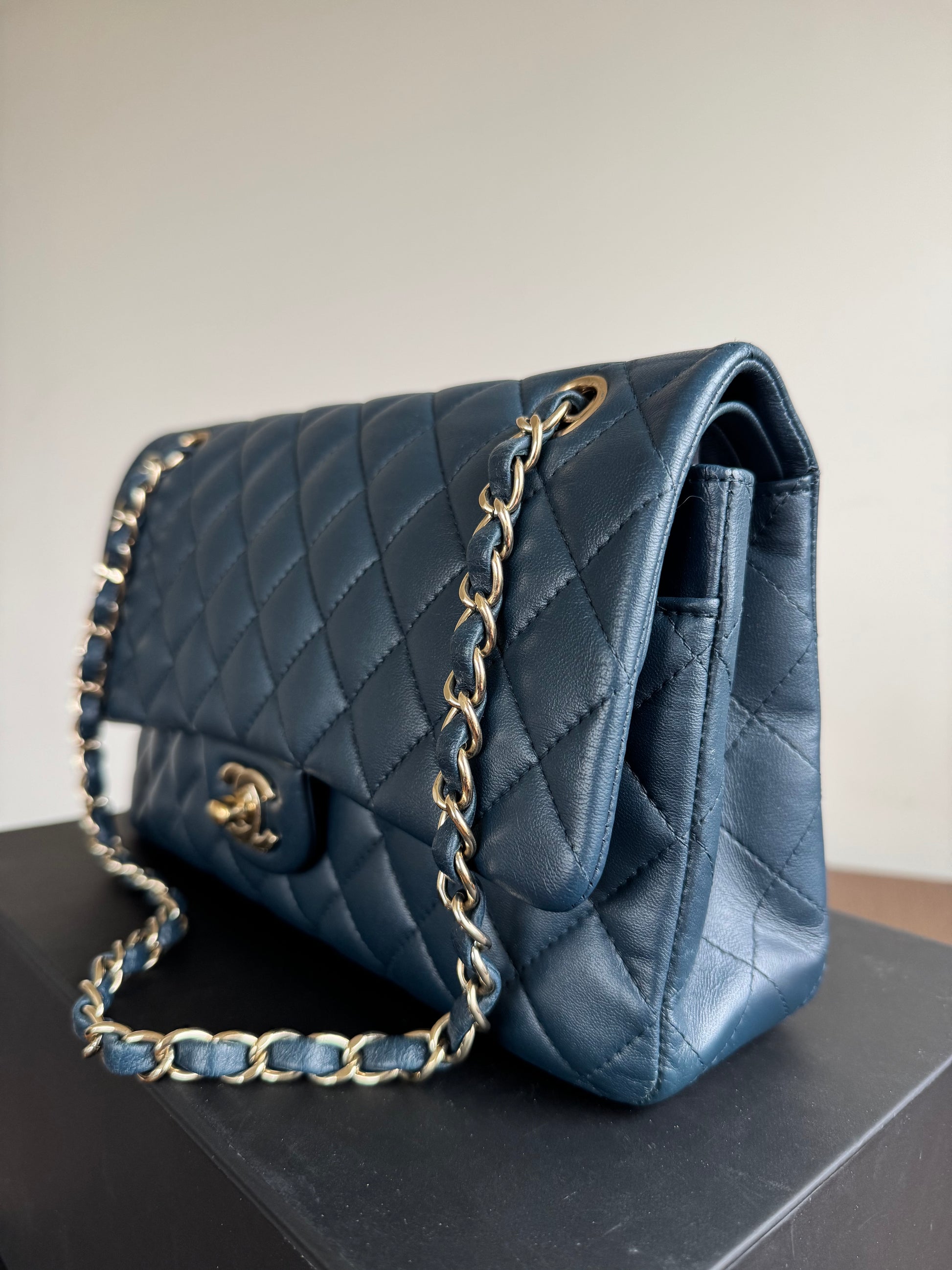 Pre-owned Chanel Timeless Classic Medium Marine Blue Lambskin Flap Bag