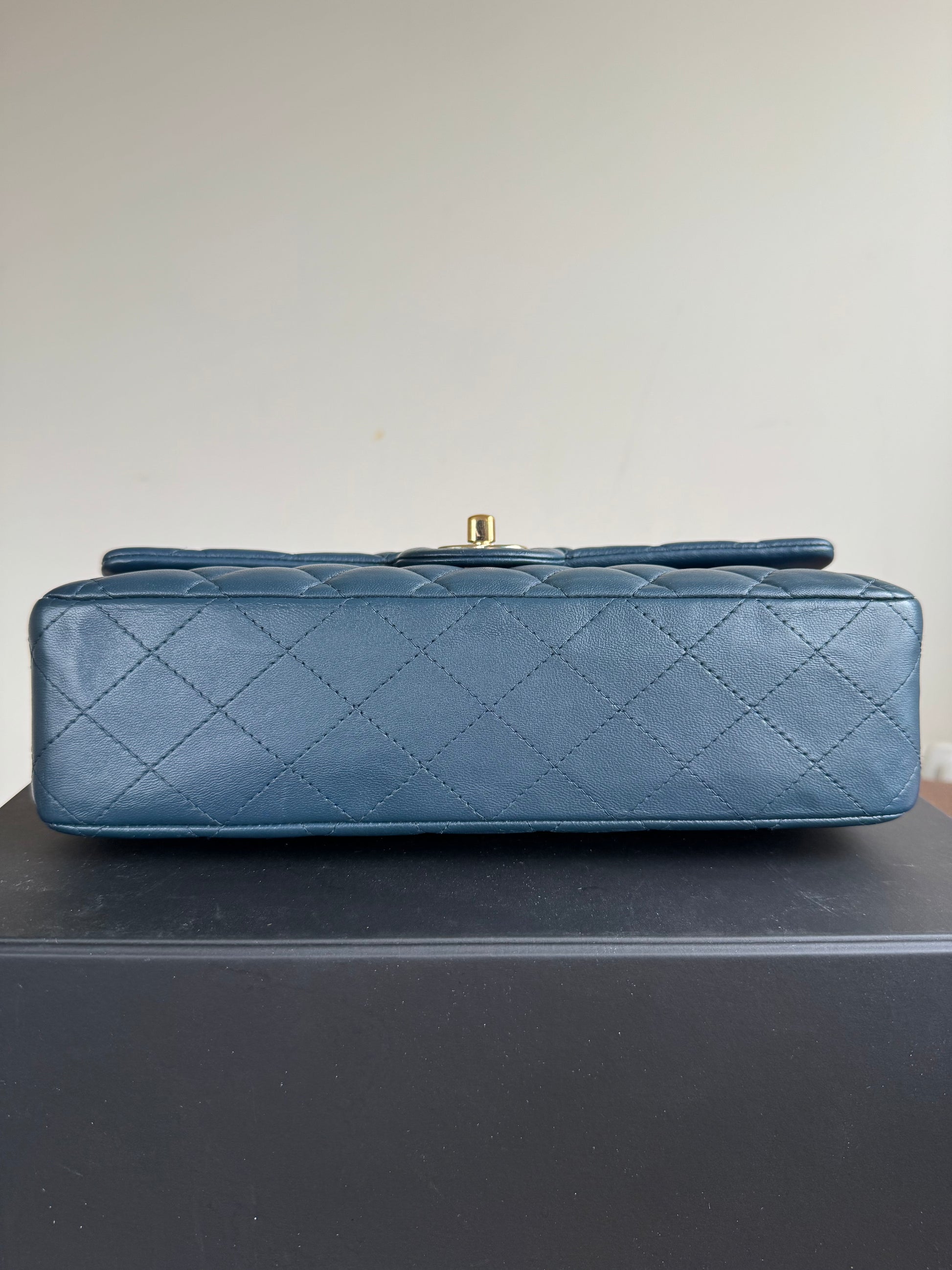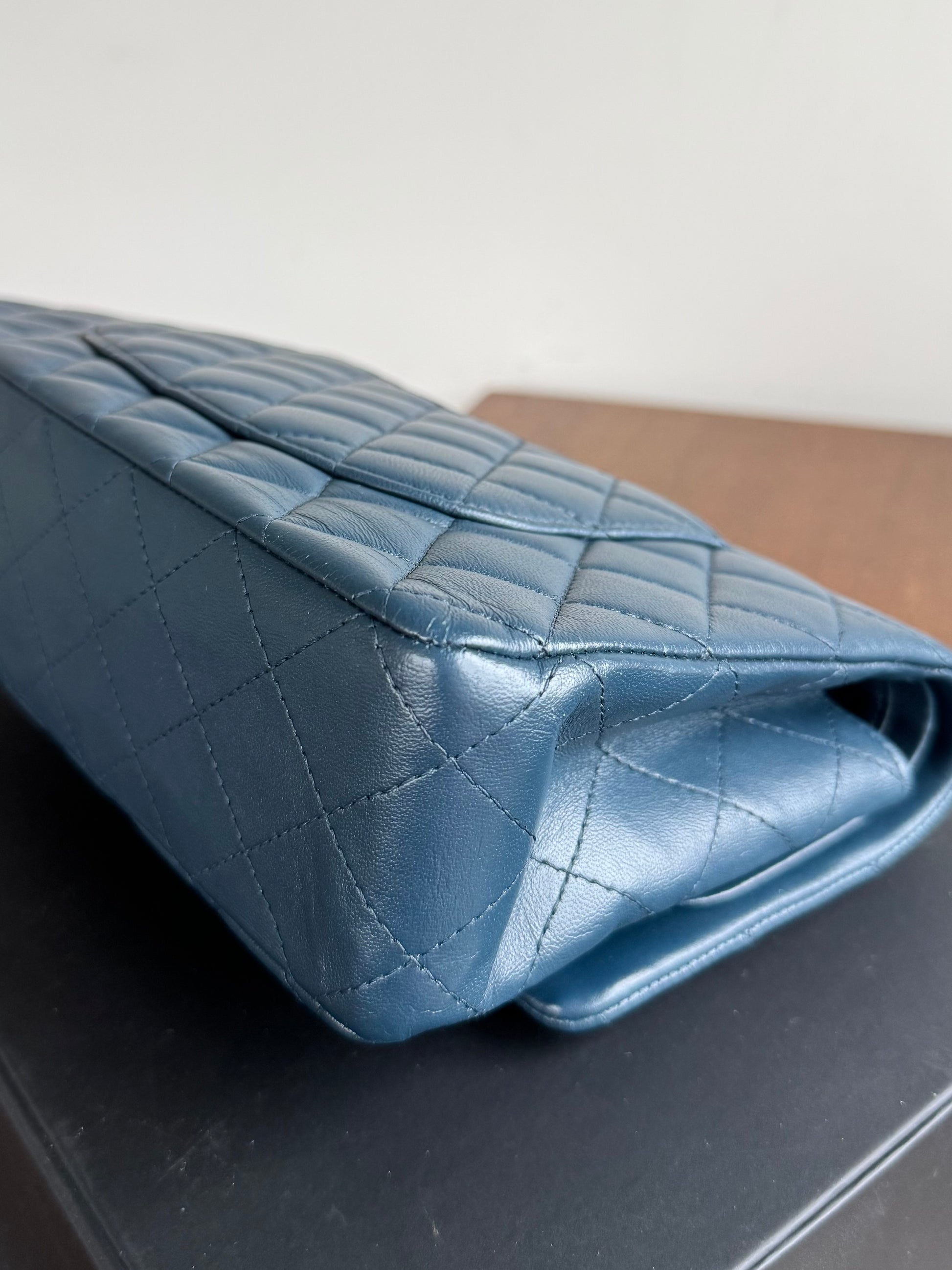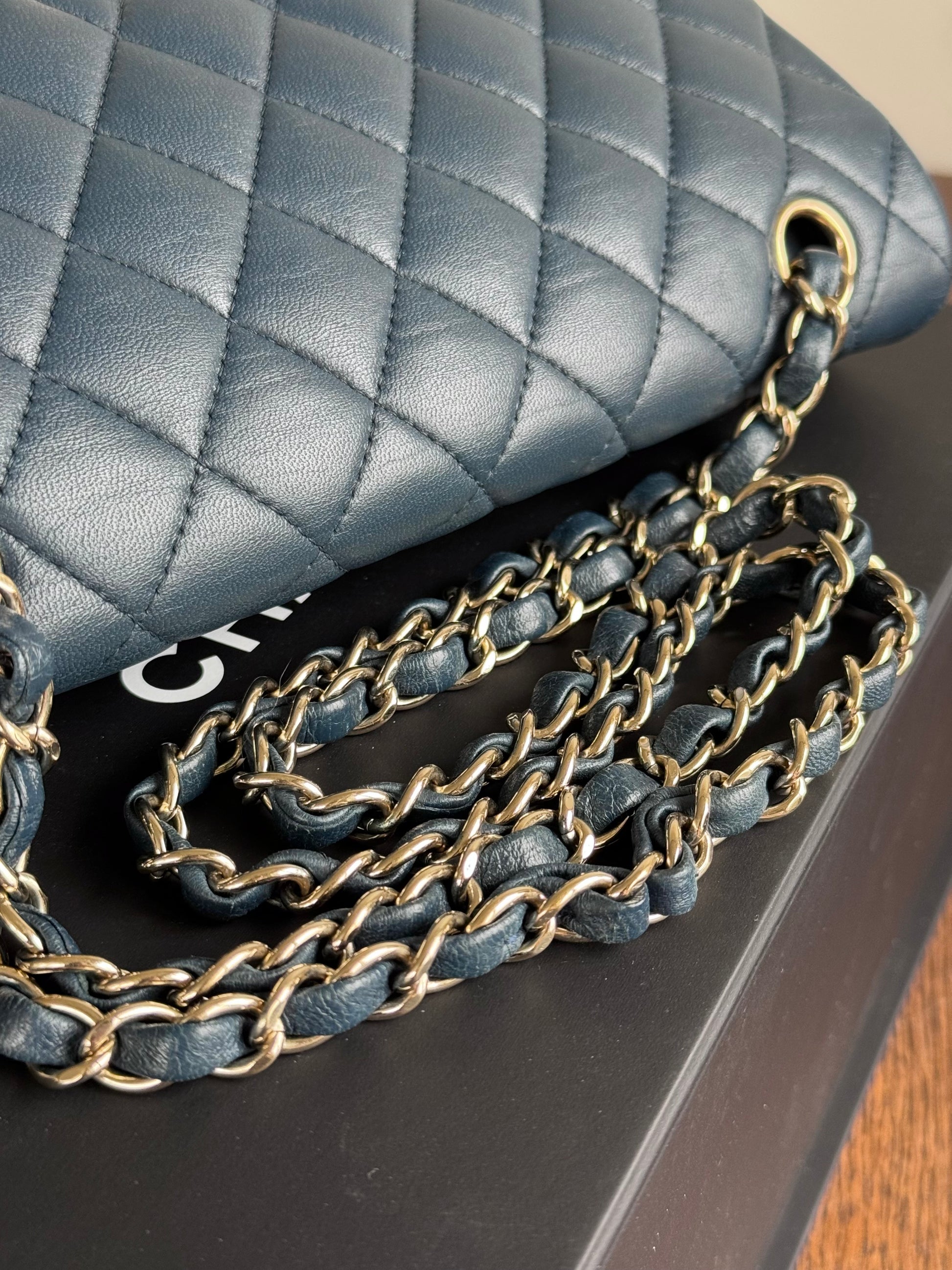 Pre-owned Chanel Timeless Classic Medium Marine Blue Lambskin Flap Bag