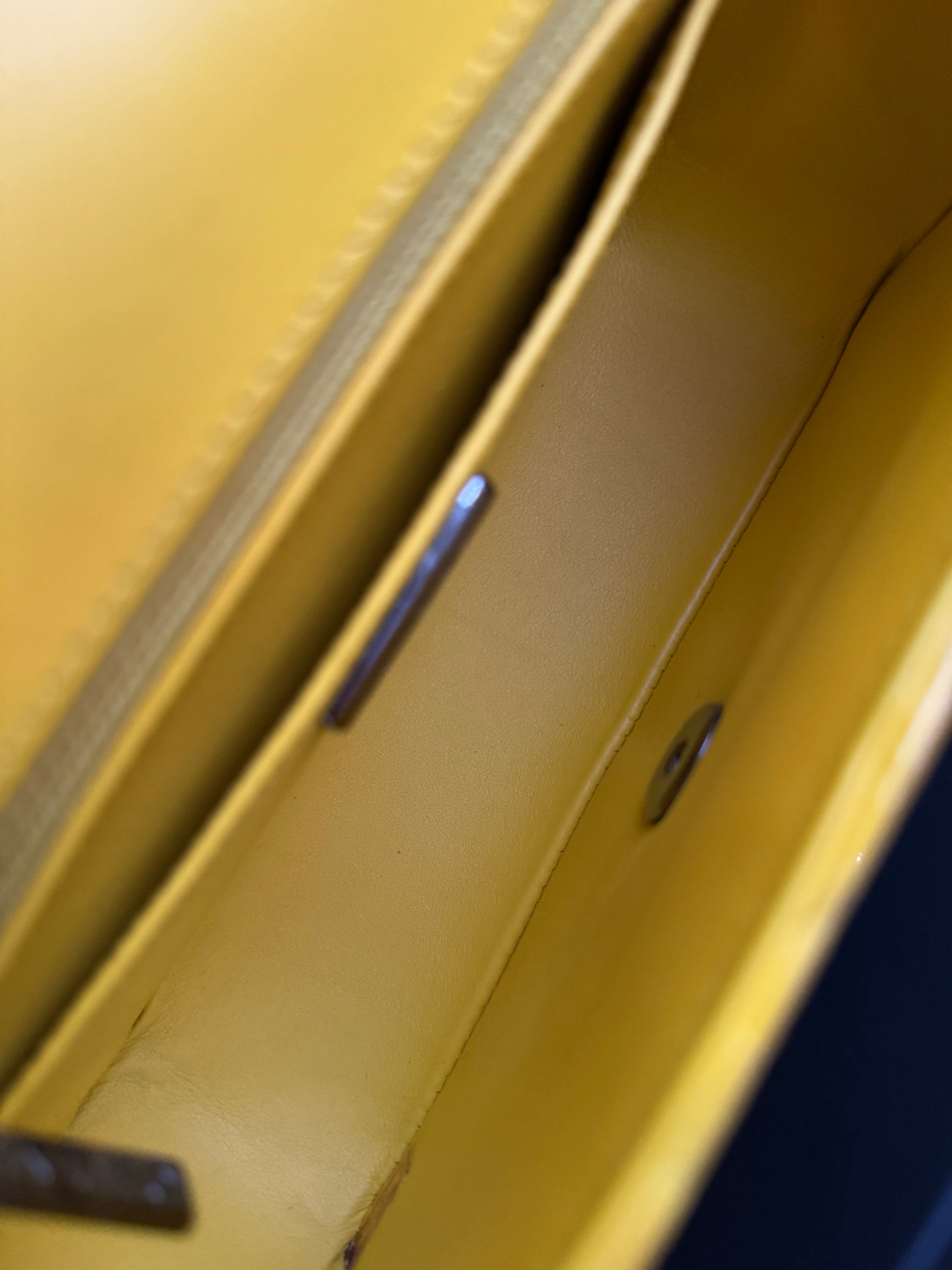 •From the year 2014 (19618484) •Yellow python •Yellow leather lining •Silver hardware •The chain is nether removable nor adjustable •Can be worn crossbody •In very good condition •There is a crease on the back of the bag •Sold with full accessories : the authenticity card, dust bag, box and care booklet •Width:20cm Height:12cm Depth:6cm