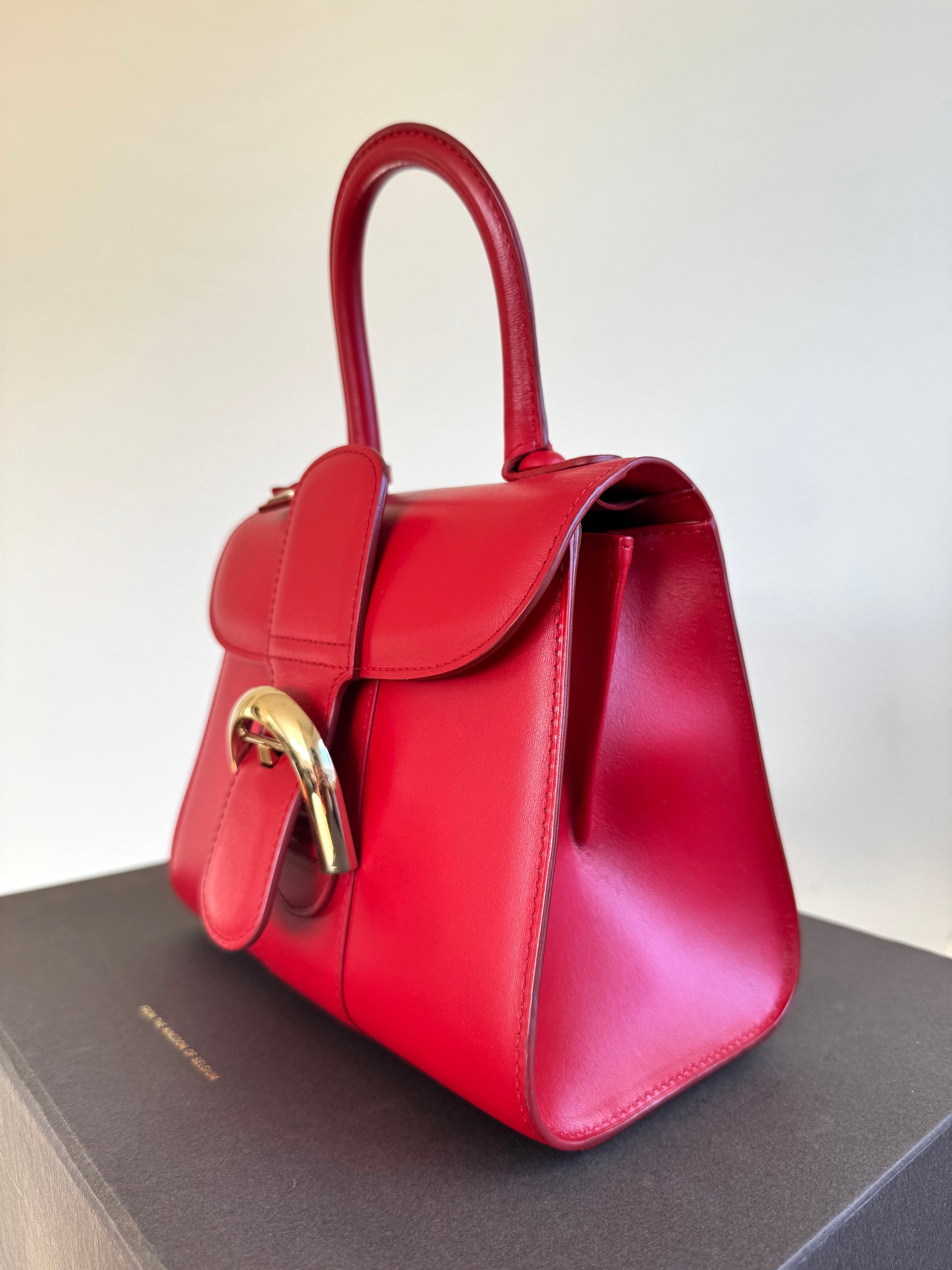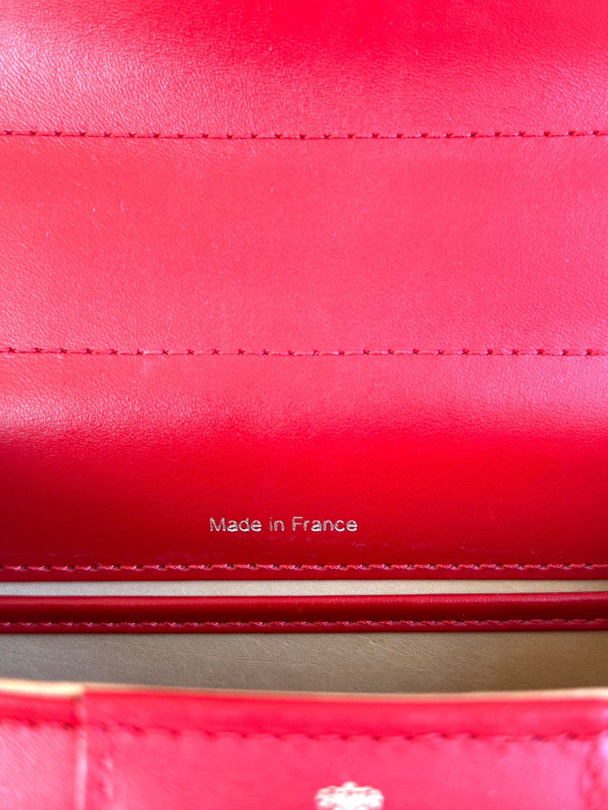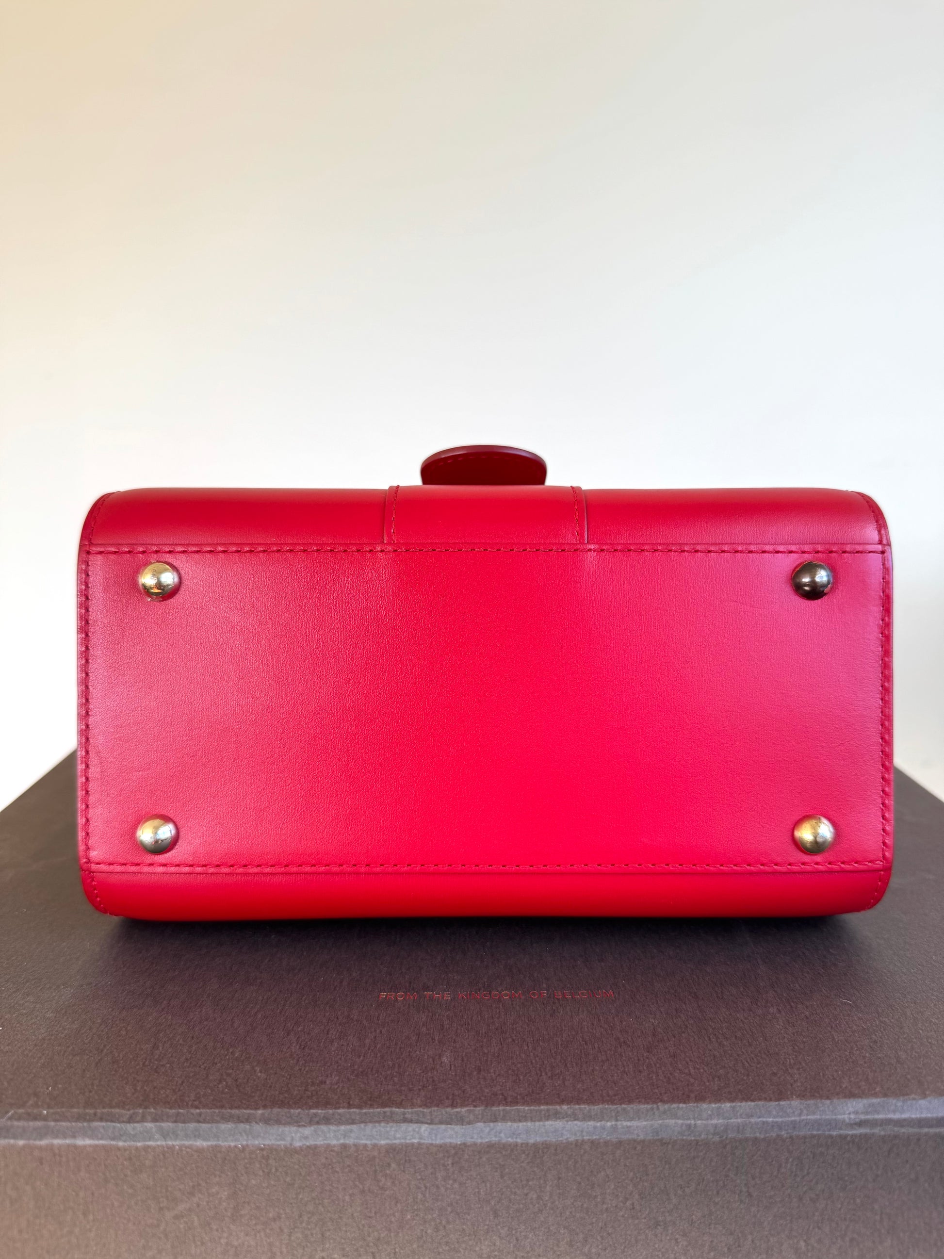 •Red calfskin leather •Original calfskin lining •Gold hardware •The strap is removable and adjustable •Can be worn crossbody •In very good condition •The lining shows some slight signs of use, and one bottom stud has oxidized and faded •Sold with a strap, the dust bag and box •Width:20cm Height:16cm Depth:11cm