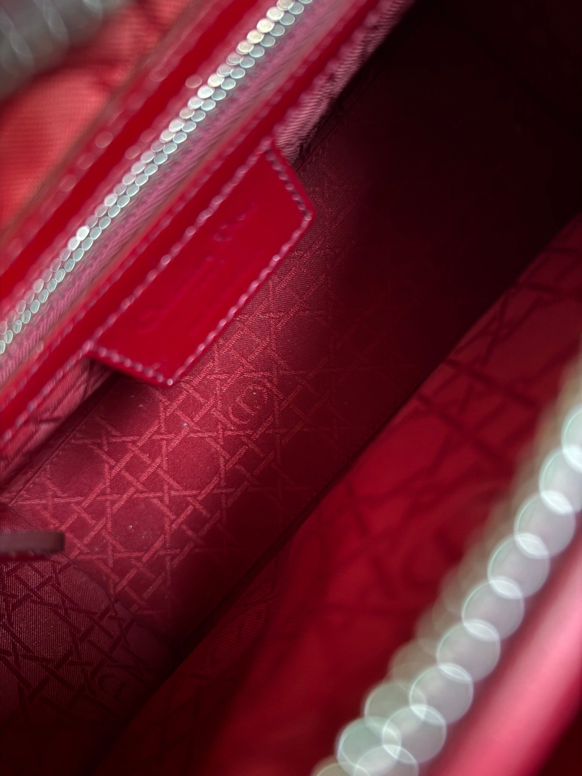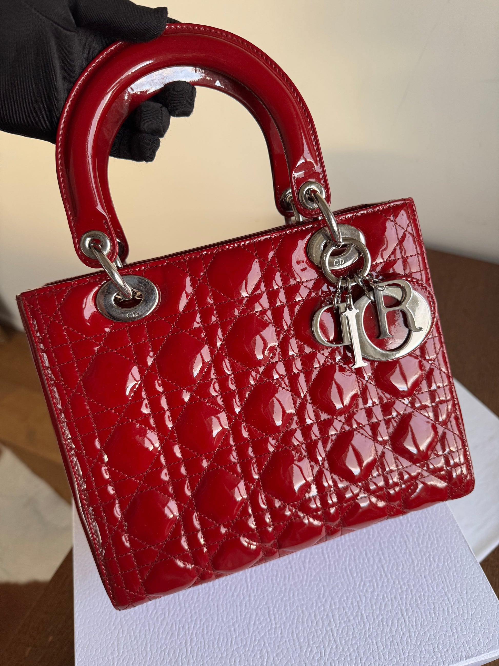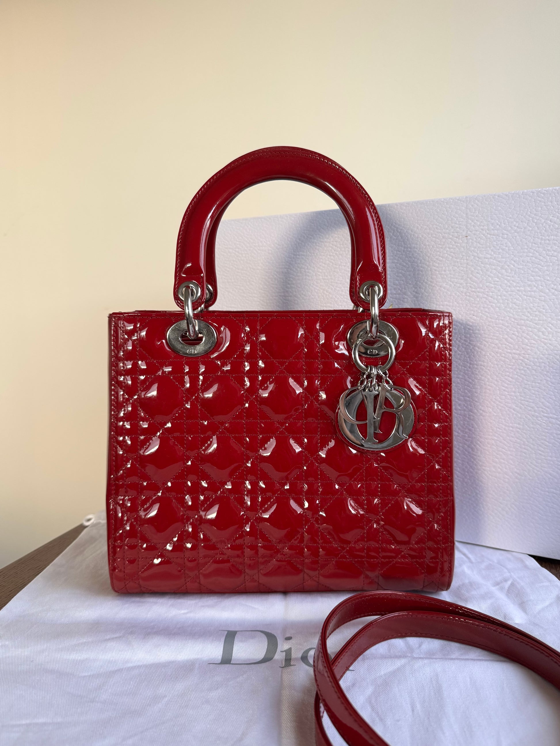 Pre-owned Dior Lady Dior Medium Burgundy Patent Leather Bag