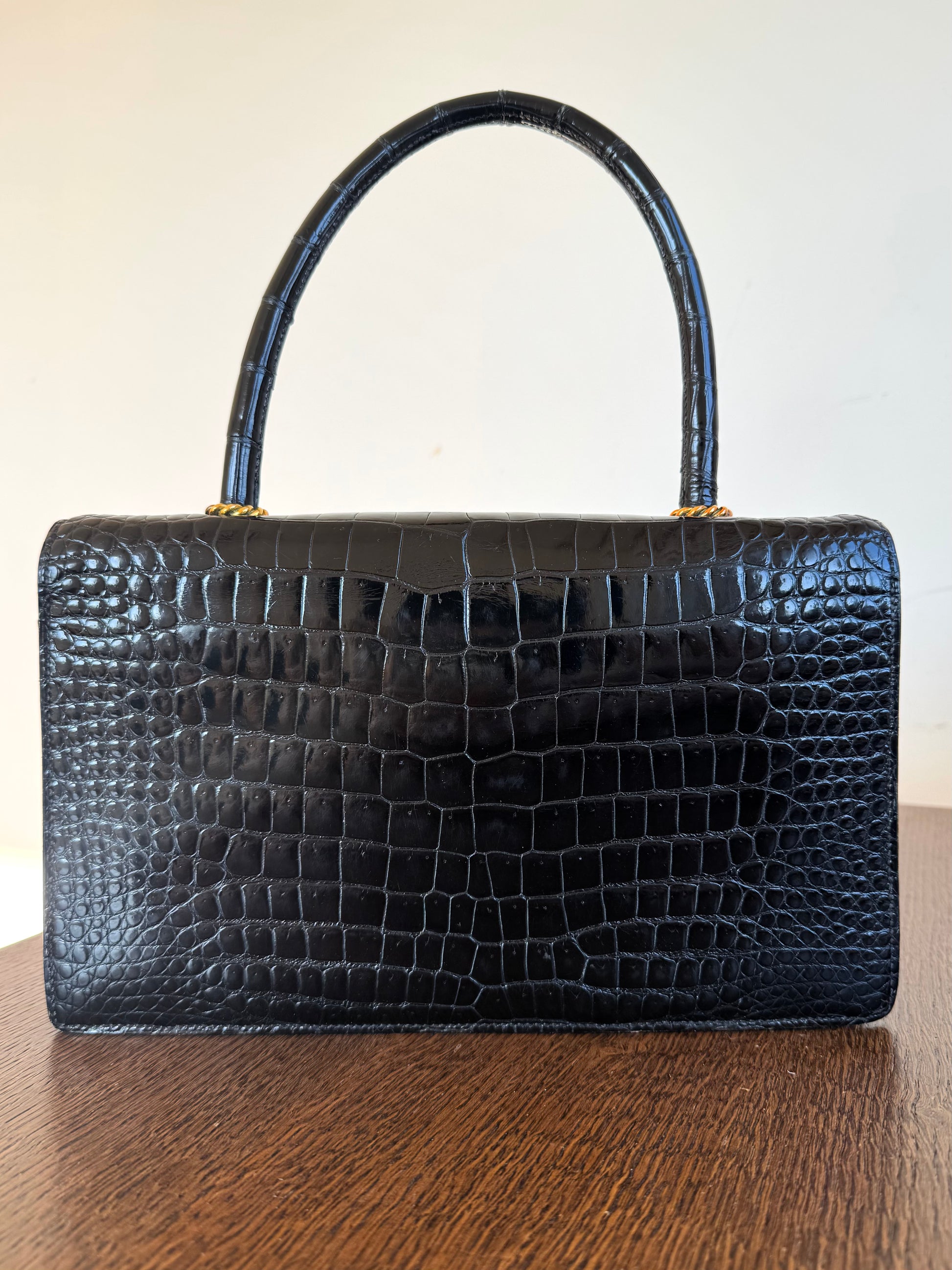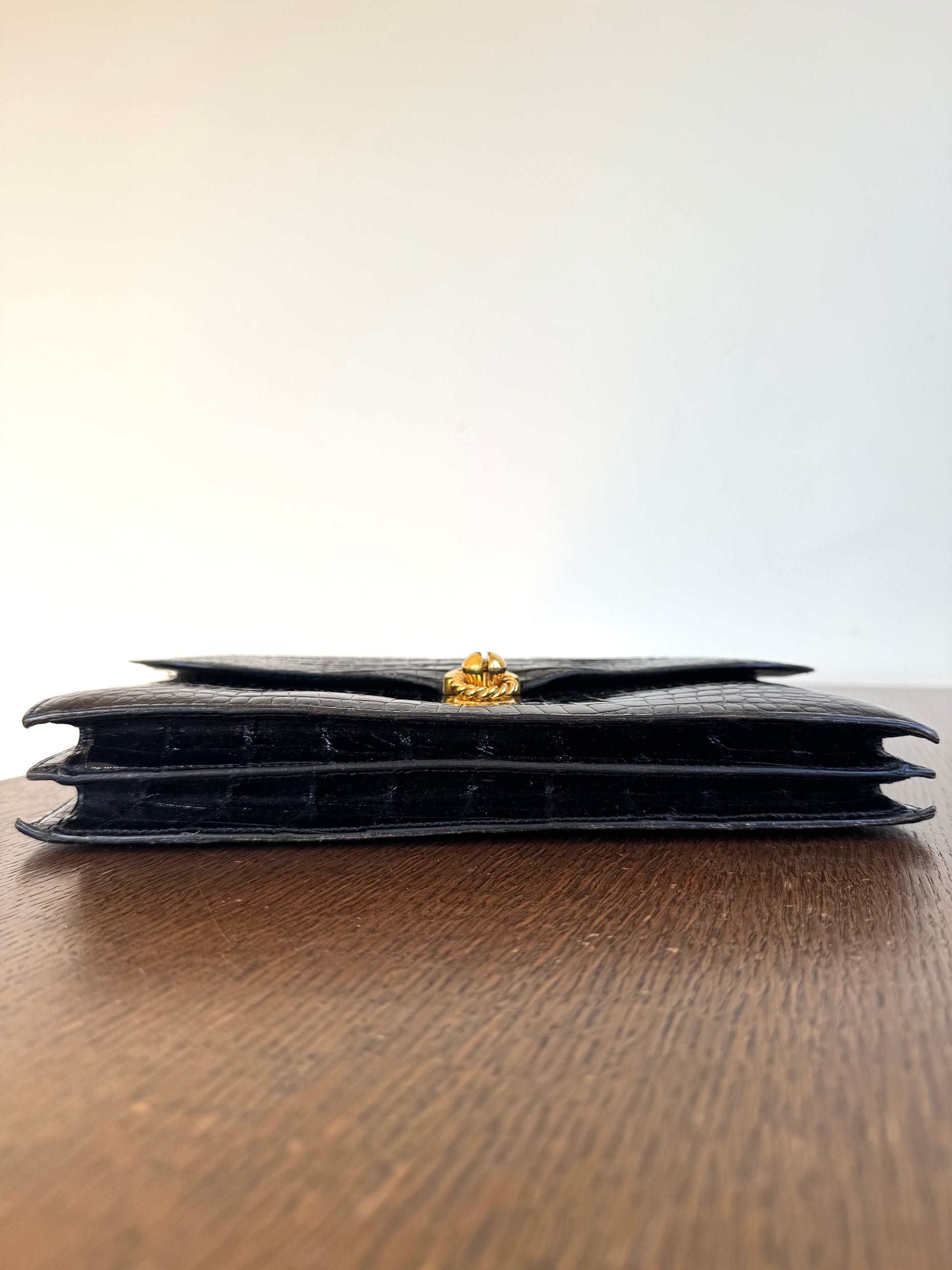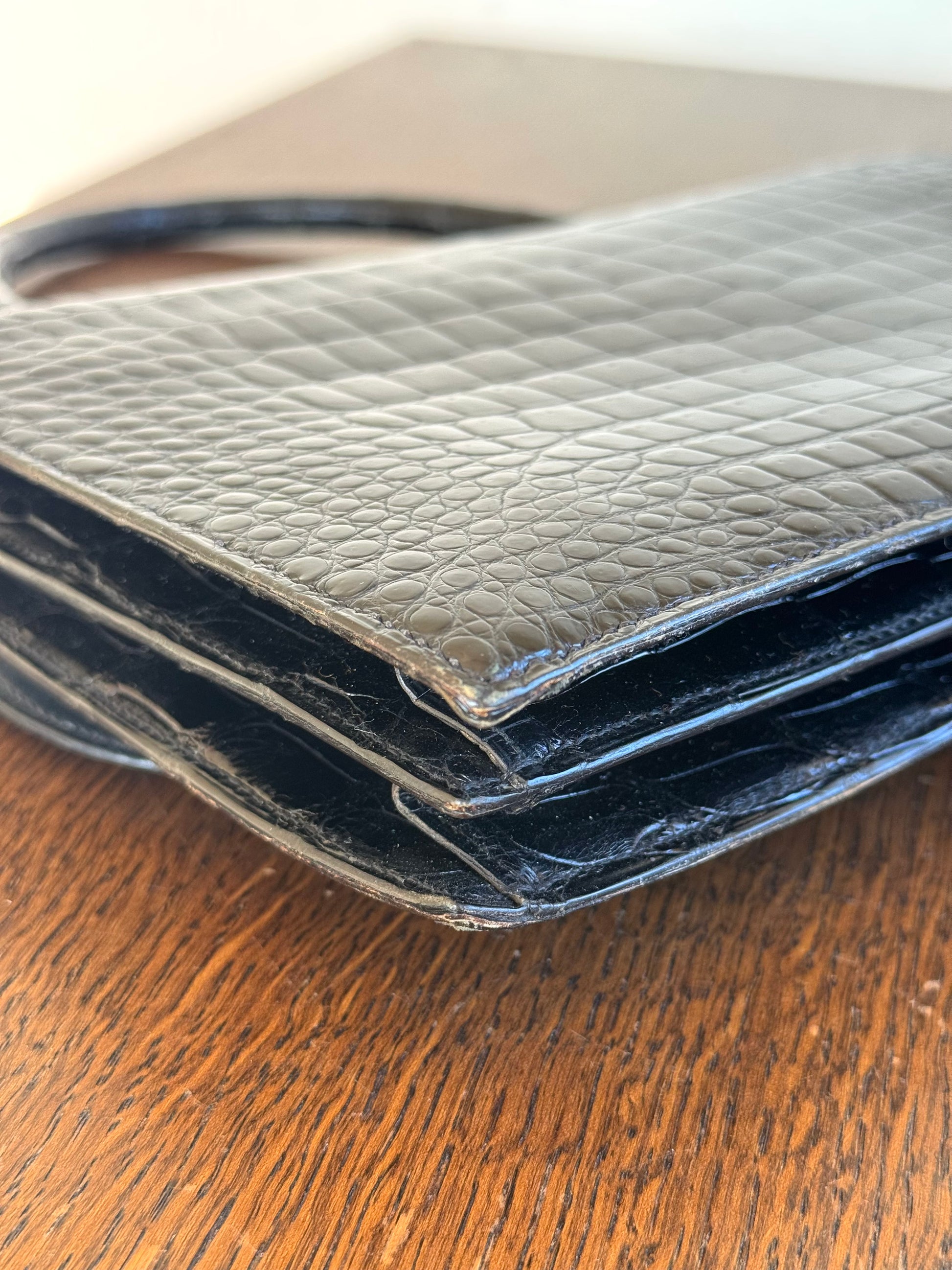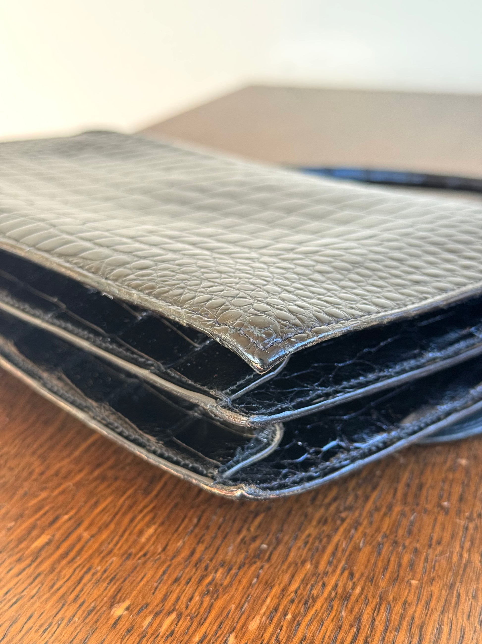 •Black crocodile leather